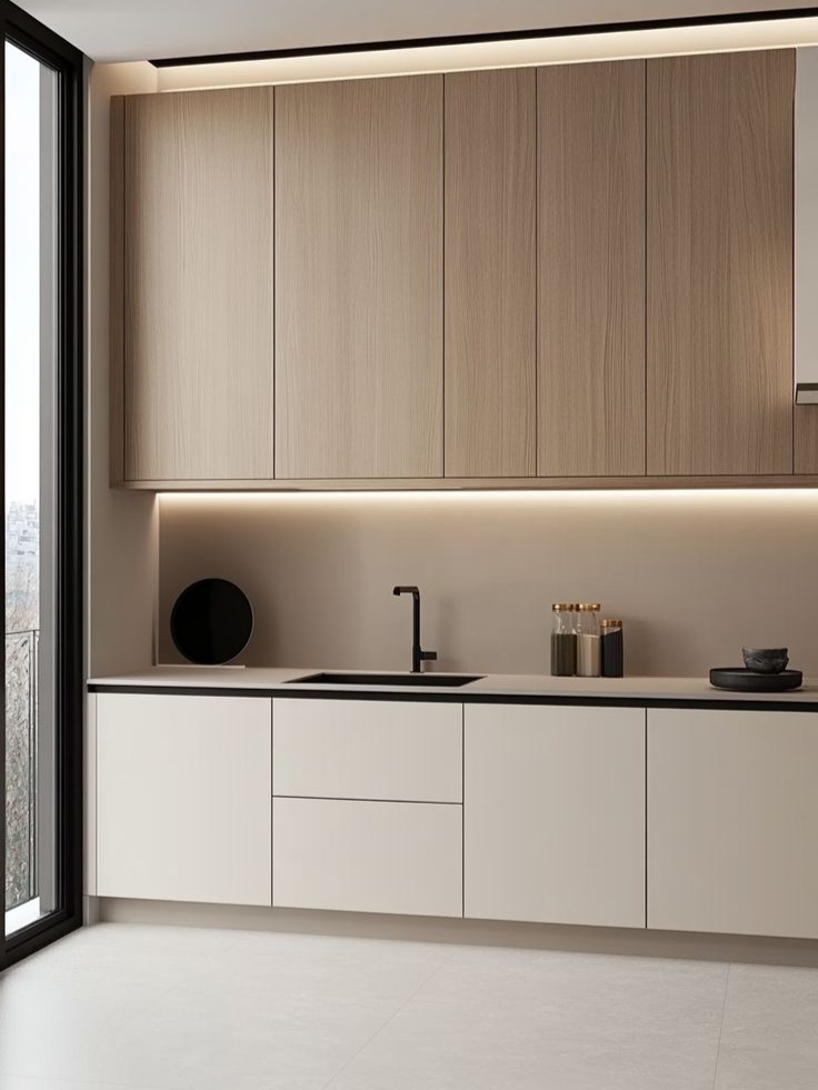 - Разнообразие текстур — камень, дерево, бетон, однотонные матовые оттенки.
