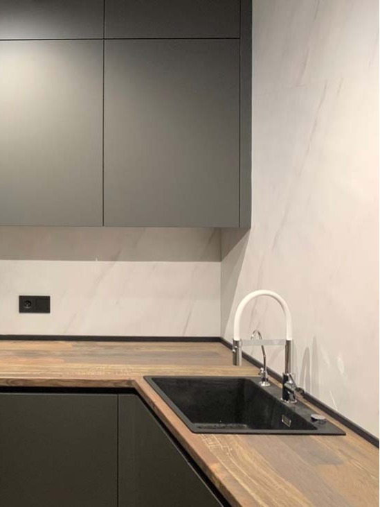 Бесшовные поверхности и идеальная гладкость делают Krion® идеальным выбором для кухонь и ванных комнат высокого класса.